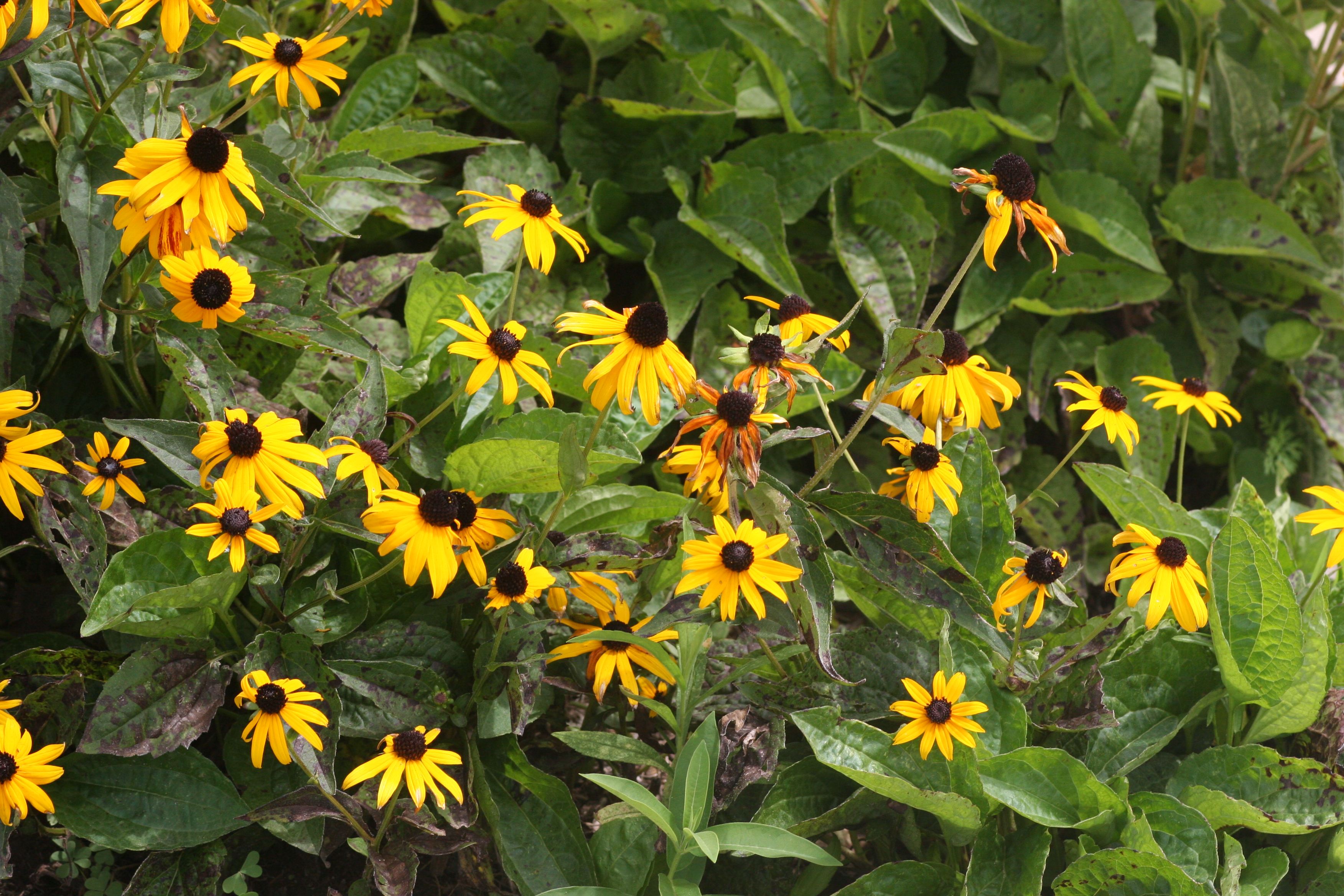 Symptoms: Tan to brown leaf spots, small black fruiting bodies (pycnidia) may be visible in the lesions. Lesions on Rudbeckia and Echinacea are purple. Lesions may be more severe on older foliage.