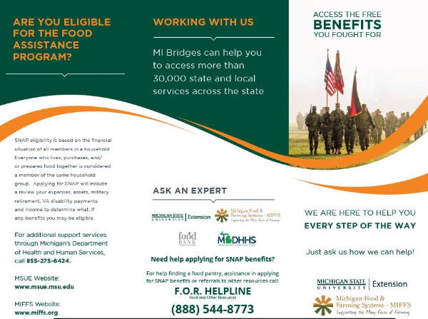 Michigan State University (MSU) Extension partners with Michigan Department of Health and Human Services (MDHHS) to provide Supplemental Nutrition Assistance Program Education (SNAP-Ed), a free nutrition education program to reduce hunger and food insecurity and promote healthy eating habits. MSU Extension