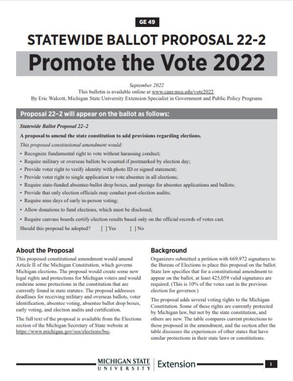 Statewide Ballot Proposal 22-2: Promote the Vote 2022