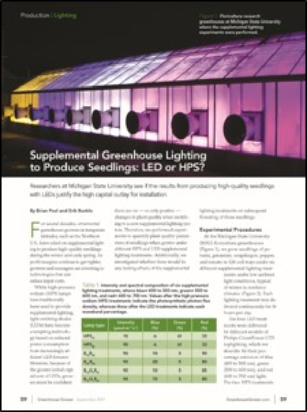 Researchers at Michigan State University see if the results from producing high-quality seedlings with LEDs justify the higher capital outlay for installation.