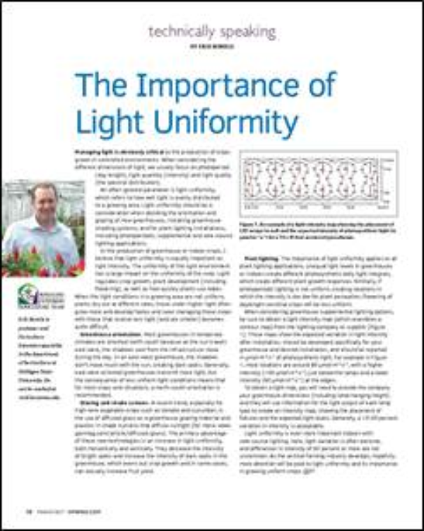 Managing light is obviously critical to the production of crops grown in controlled environments. When considering the different dimensions of light, we often overlook the importance of light uniformity.