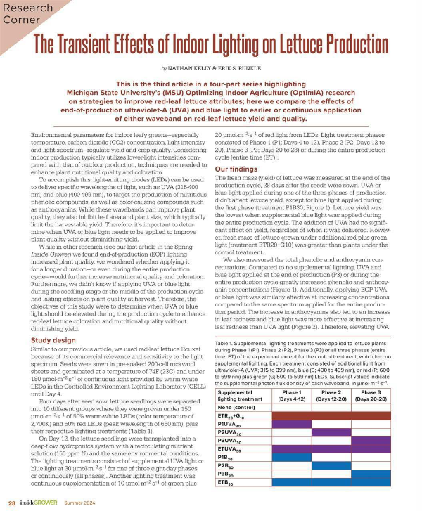 of either waveband on red-leaf lettuce yield and quality grown indoors.