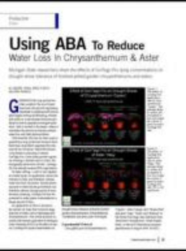 Michigan State researchers investigated how an experimental formulation of abscisic acid (ABA) influenced drought stress tolerance of finished potted garden chrysanthemums and aster. The product mentioned is not commercially available.