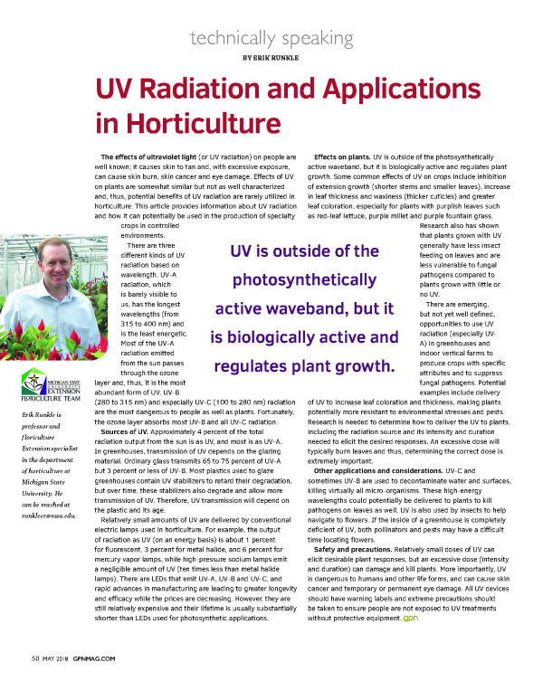 UV radiation and applications in horticulture
