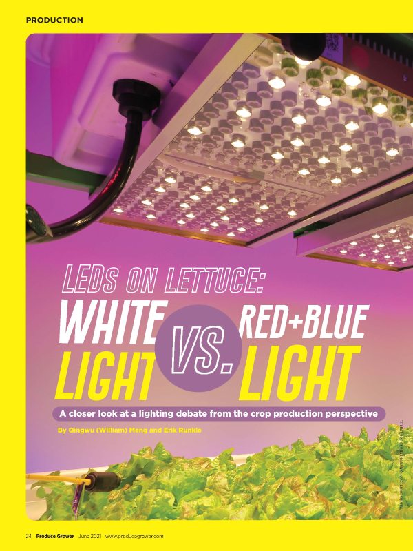 In the first article of a five-part series on indoor production of leafy greens, we join the lighting debate discussing white versus red+blue light from a crop production perspective.