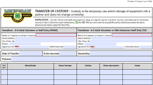 A template for recording temporary transfer of club/council-owned equipment between partners without transfer of ownership.