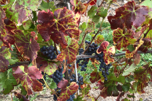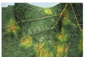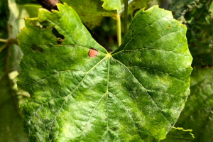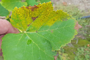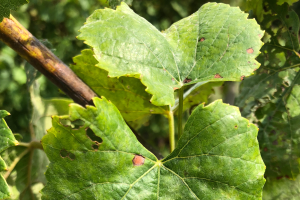 Leaf loss due to late season downy mildew impacts fruit quality and reduces winter hardiness and next year’s growth. -