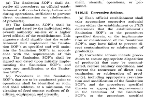 Each official establishment shall take appropriate corrective action(s) when either the establishment or FSIS determines that the establishment’s Sanitation SOP’s or the procedures specified. -