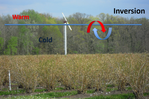Using sprinklers to protect blueberries from spring freezes