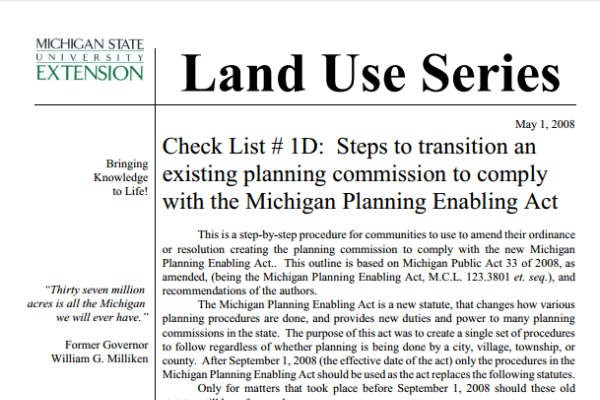 Check List #1D: Steps to transition an existing planning commission to comply with the MPEA