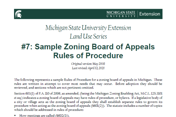 Sample #7: Zoning Board of Appeals Rules of Procedure