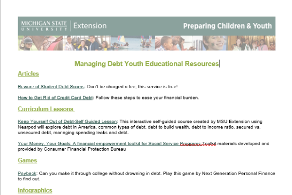 Managing Debt Youth Educational Resources