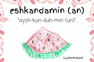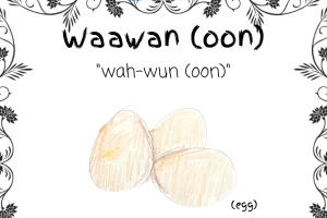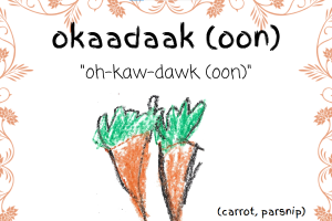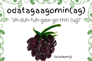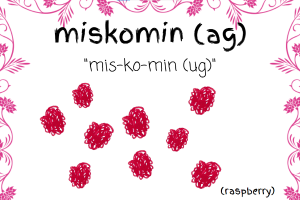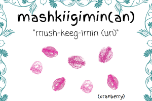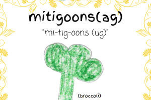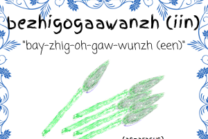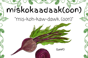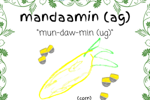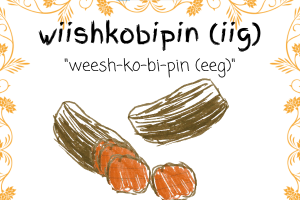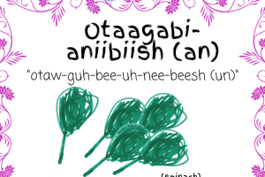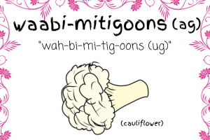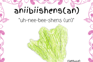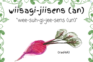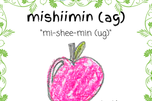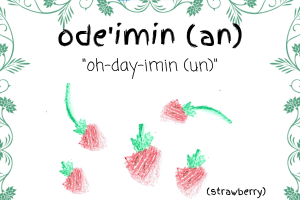Students from several schools in Sault Ste. Marie, Michigan, joined together to research and create Miijim (Food) Cards as a classroom project. Each card features a hand-drawn miijim item available at the Brimley Bay Mills Farmer's Market, paired with the names of each food item in Anishinaabemowin. This project came about after the students visited their local market, which left them wondering if there was a way to incorporate their culture and language more fully into this important hub for the community.