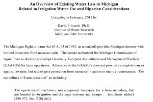 An Overview of Existing Water Law in Michigan Related to Irrigation Water Use and Riparian Considerations