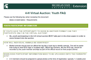 4-H Virtual Auction Explanation for Youth Marketing Projects