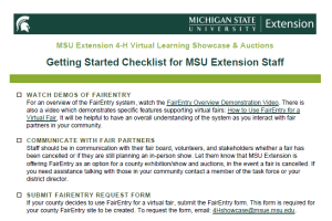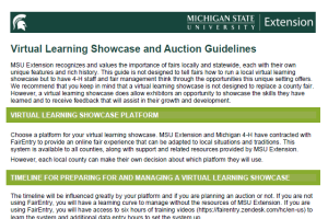 This resource will be helpful to MSU Extension staff interested in creating a virtual learning showcase or auction via FairEntry. -