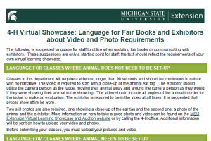 4-H Virtual Showcase: Language for Fair Books and Exhibitors about Video and Photo Requirements