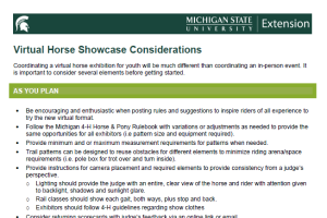 Coordinating a virtual horse exhibition for youth will be much different than coordinating an in-person event. It is important to consider several elements before getting started. -