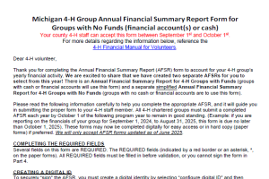Michigan 4-H Digital Annual Financial Summary Report for Group with No Funds